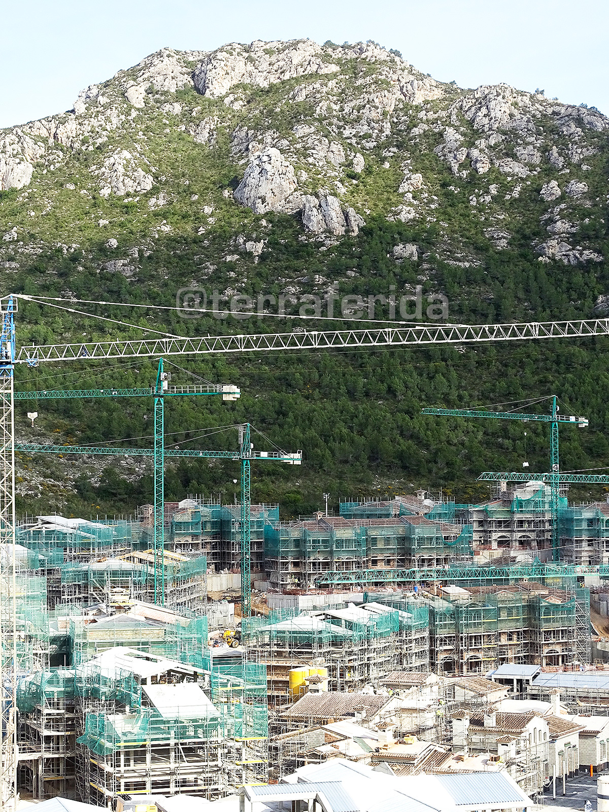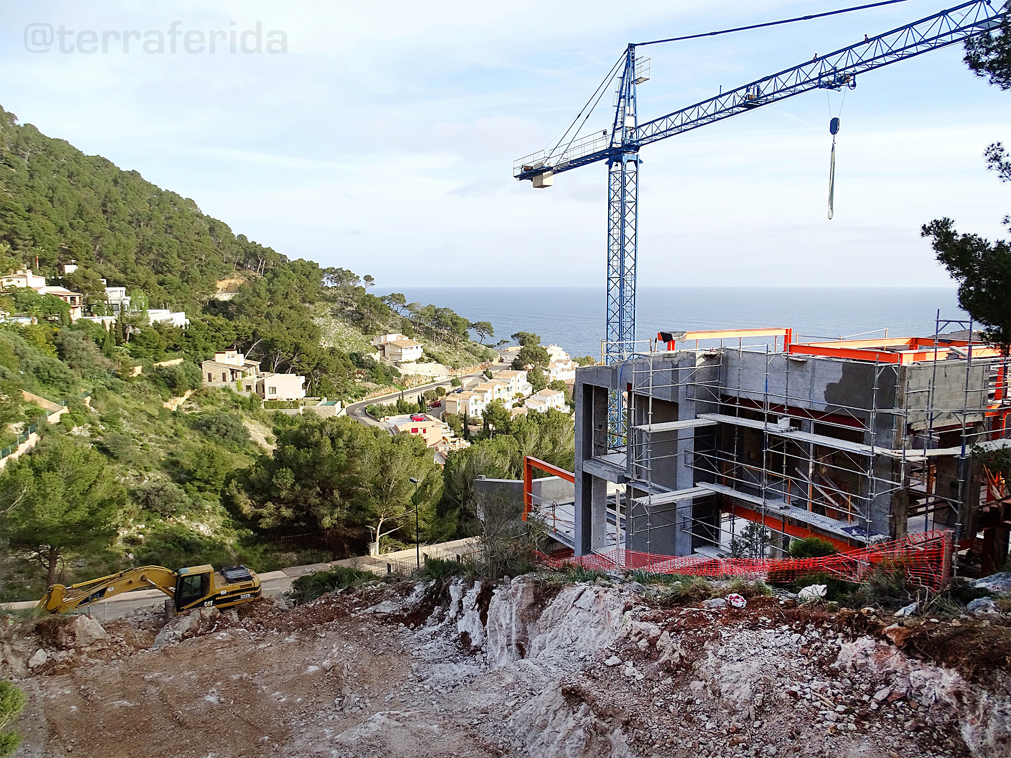 En tercer lloc hi ha la urbanització de l’altra part de la vall, la muntanya litoral que vessa cap al Cap des Pinar. També s’està edificant. Les pales i picadores n’ocupen els llocs que no s’havien edificat. No hi ha pendents, no hi ha mesura, no hi ha límits quan el luxe toca a la porta d’un ajuntament insensible.